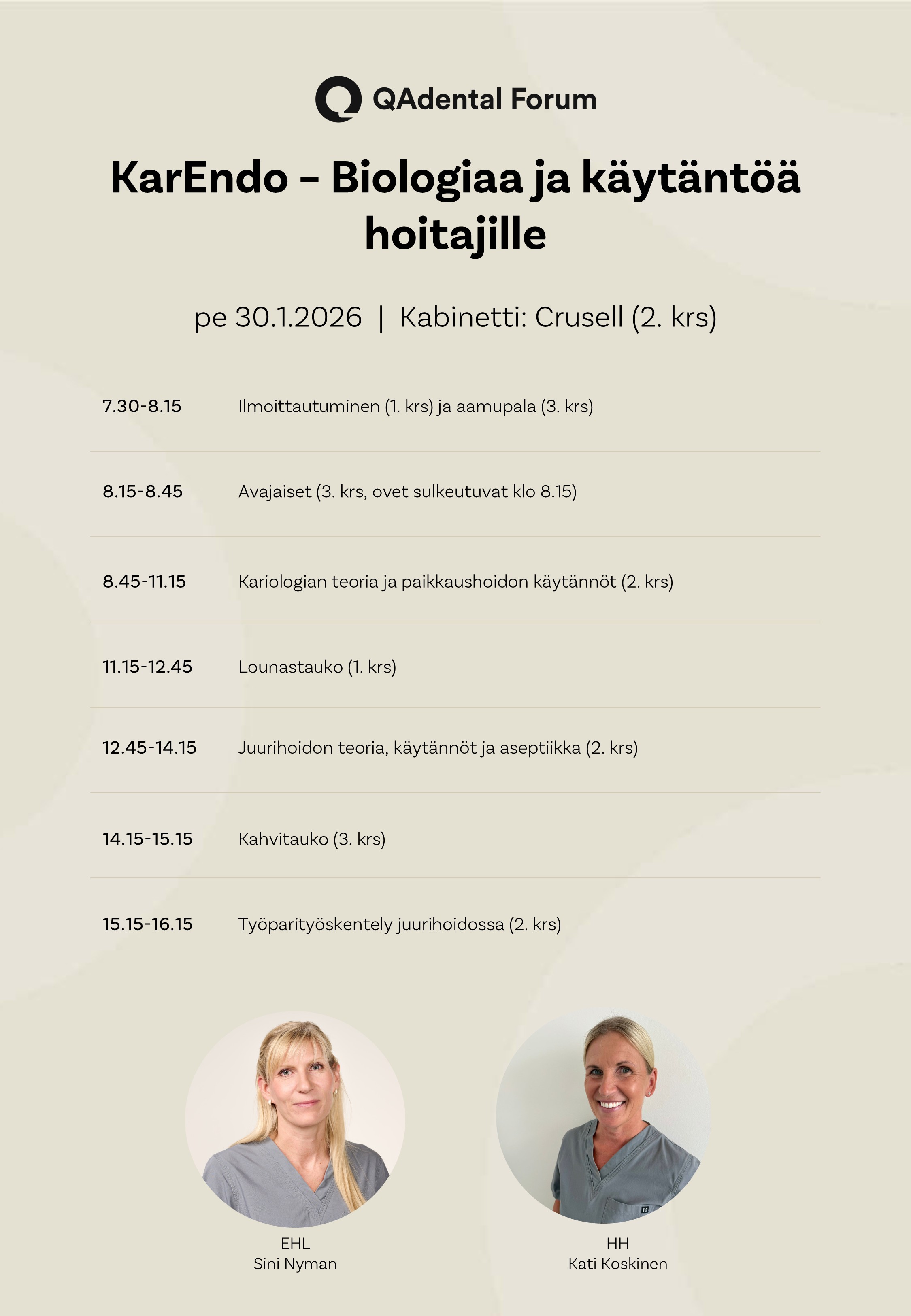 KarEndo – Biologiaa ja käytäntöä hoitajille - QAdental Forum 2026 - erikoisteema 30.1.2026