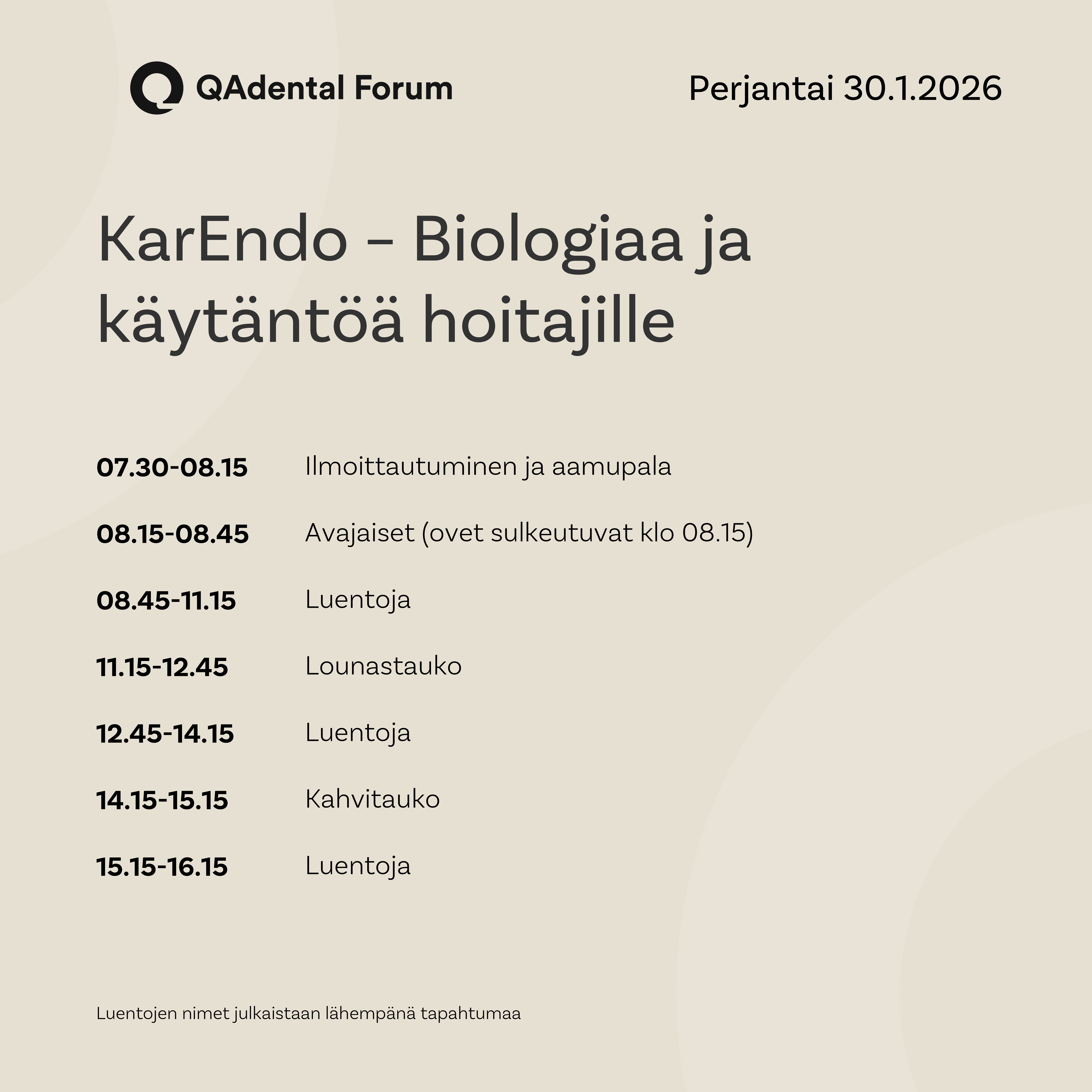 LISÄPAIKKOJA AVATTU: KarEndo – Biologiaa ja käytäntöä hoitajille - QAdental Forum 2026 - erikoisteema 30.1.2026