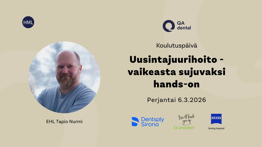Hands-on kurssi on jatkumo EHL Tapio Nurmen 9.1.2026 pidettävään webinaariin, Uusintajuurihoito – vaikeasta sujuvaksi, joka toimii teoriapohjana kurssille. Kyseinen luento tulee olla katsottu ja tentitty ennen koulutuspäivään osallistumista.