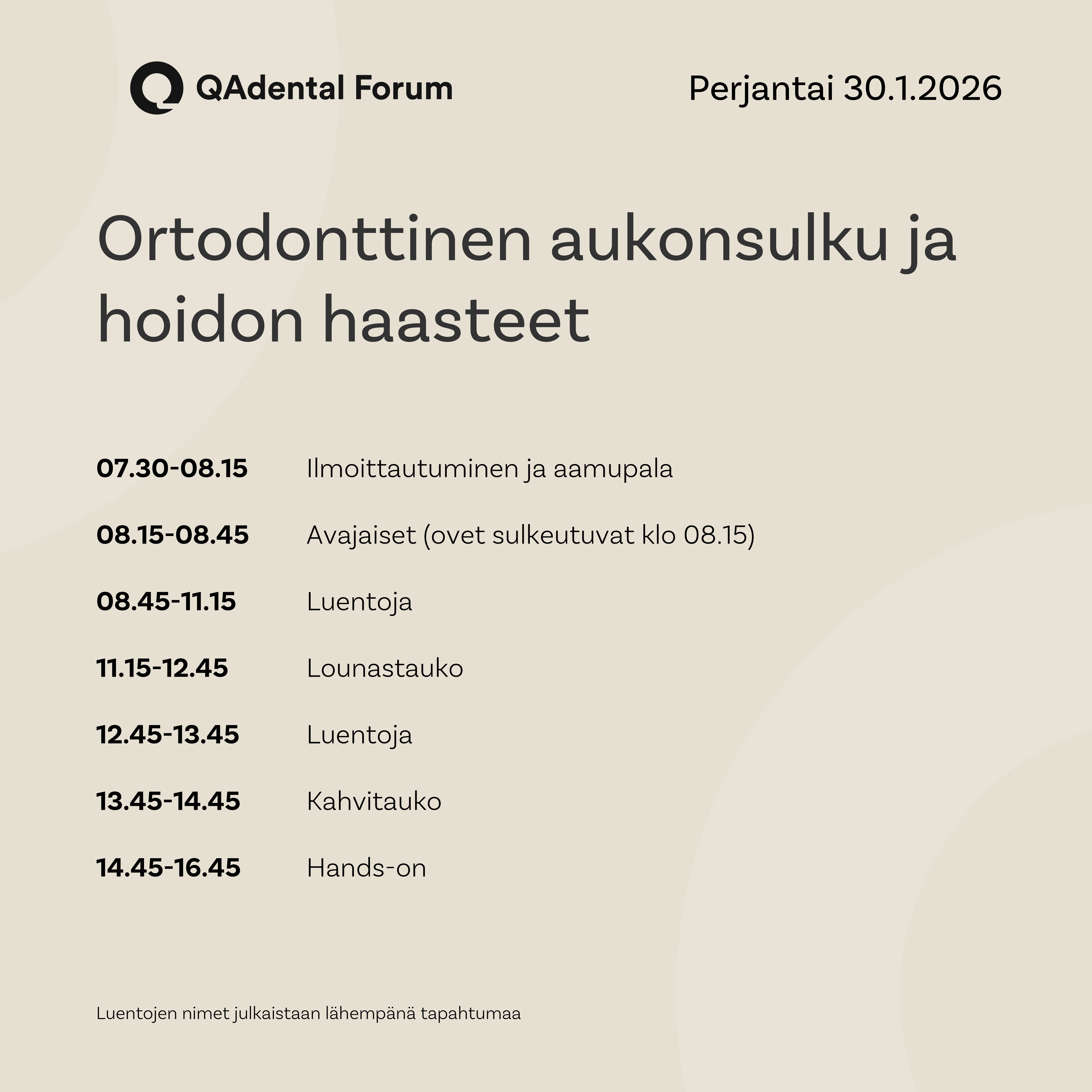 VIELÄ PAIKKOJA LUENNOILLE: Ortodonttinen aukonsulku ja hoidon haasteet - QAdental Forum 2026 - erikoisteema 30.1.2026