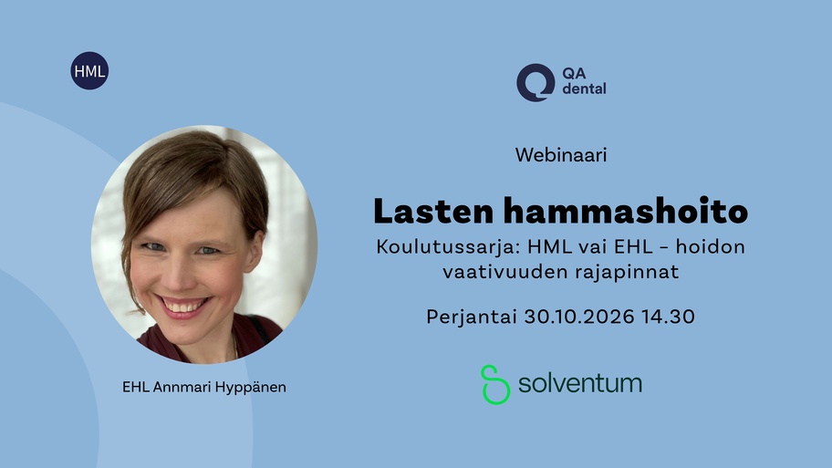 UUSI JULKAISU: Webinaari 30.10.2026 – HML vai EHL – hoidon vaativuuden rajapinnat – Lasten hammashoito, EHL Annmari Hyppänen