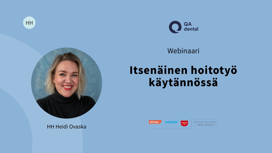 Webinaarisarjan Hammashoitajan itsenäinen hoitotyö toisessa webinaarissa hammashoitaja Heidi Ovaska avaa itsenäistä hoitotyötä tekevän hammashoitajan arkea. Käsittelyssä ovat mm. terveyden edistäminen, perhekeskeinen työskentely sekä lapsipotilaan yksilöllinen kohtaaminen.