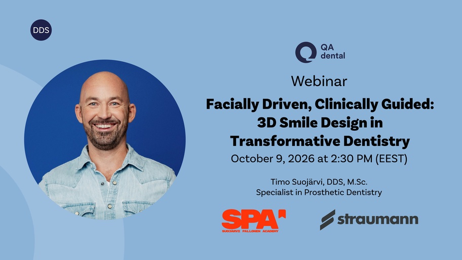 Webinar Oct. 9, 2026 - Facially Driven, Clinically Guided: 3D Smile Design in Transformative Dentistry, Dr. Timo Suojärvi, DDS, M.Sc. Specialist in Prosthetic Dentistry